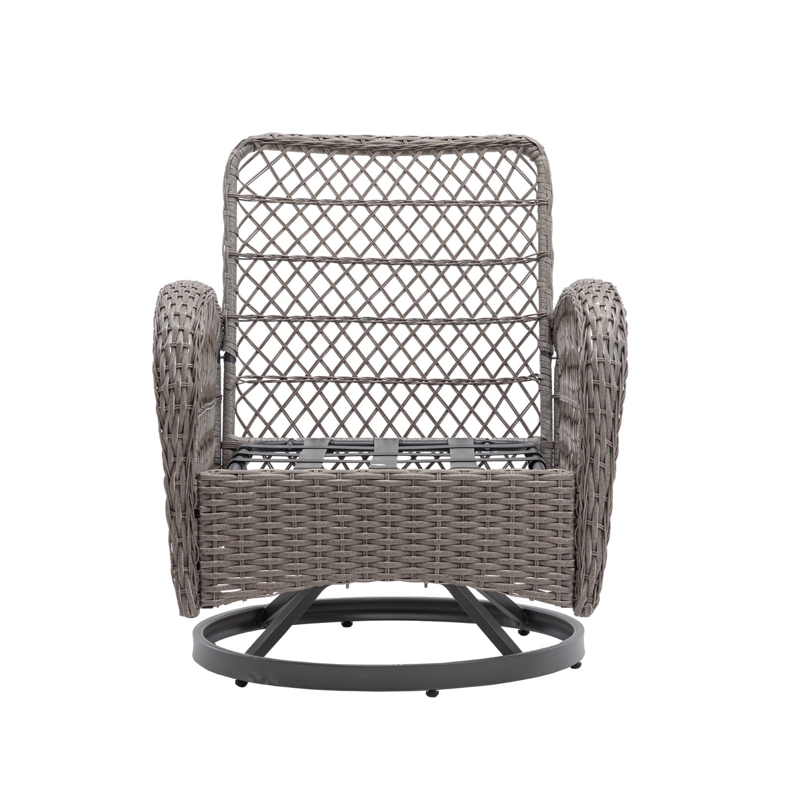 Grey coated heavy steel frame has the characteristics of stability and strong load-bearing capacity up to 330lbs.All-weather round wicker withstands the elements. The cushion adopt good fabric, filled with high-density sponge for high resilience, comfortable and durable, removable and washable.