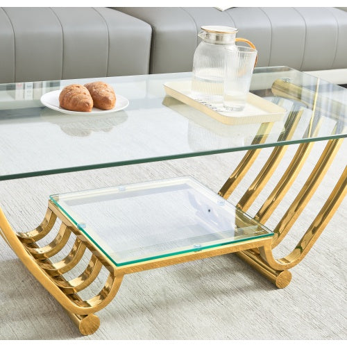 Product Name:47" Rectangle Modern Stainless Steel Coffee Table, Double-Layer Clear Tempered Glass Coffee Table, Center Table Table with Storage, for Living Room Home Office, Easy Assembly, Gold
