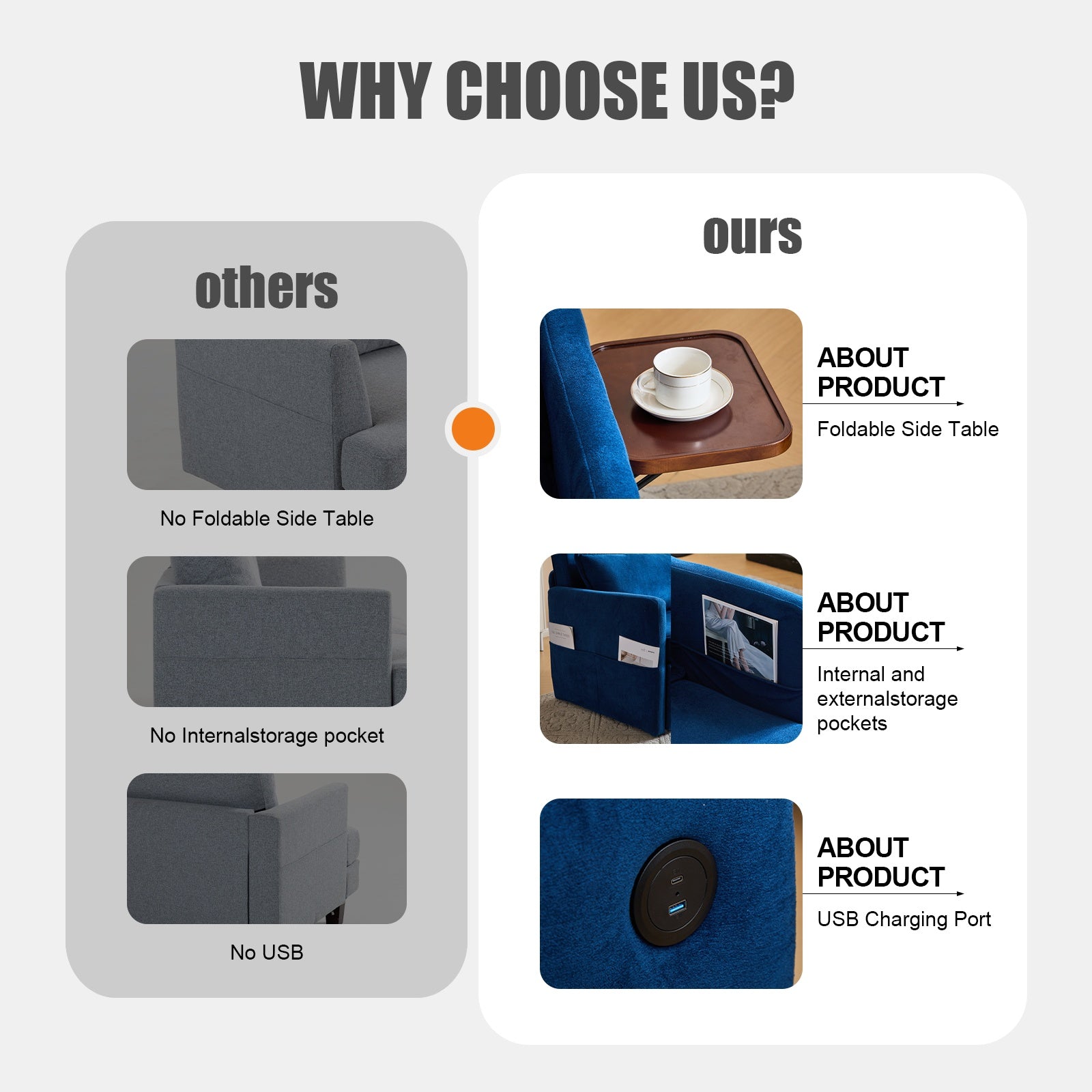 Adult Sleeper Chair Bed, 3-in-1 Convertible Sofa Chair Bed Pull-out Sofa Bed, Convenient Folding Tray Table With USB And Type-C Charging Ports For Living Room Cannot Be Sold On Temu