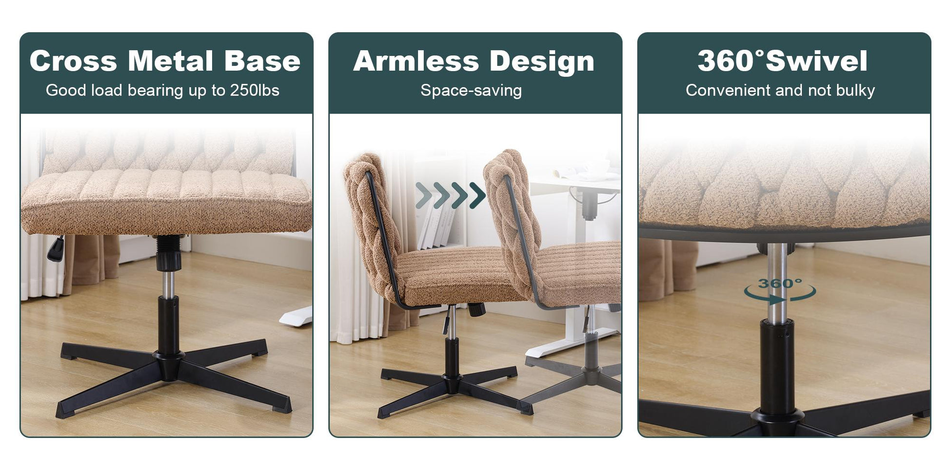 Indulge in the perfect fusion of comfort and style with this armless office desk chair. Its sleek, modern appearance, coupled with intricate woven details, effortlessly complements any decor, creating an ambiance of unparalleled comfort and elegance. Whether gracing offices, bedrooms, studies, living rooms, dressing tables, parlors, or dorm rooms, this chair stands out as the epitome of sophistication.