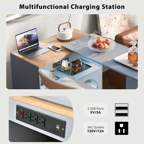 - [Convenient Power Outlet] Designed with practicality in mind, our modern rolling kitchen island boasts the convenience of 2 USB ports and 3-hole sockets. Effortlessly charge your coffee maker, ice maker, and phones, while indulging in your favorite beverages. With a generous cord length of 2 meters, this kitchen accent cabinet can be utilized in various locations like the dining room and living room.