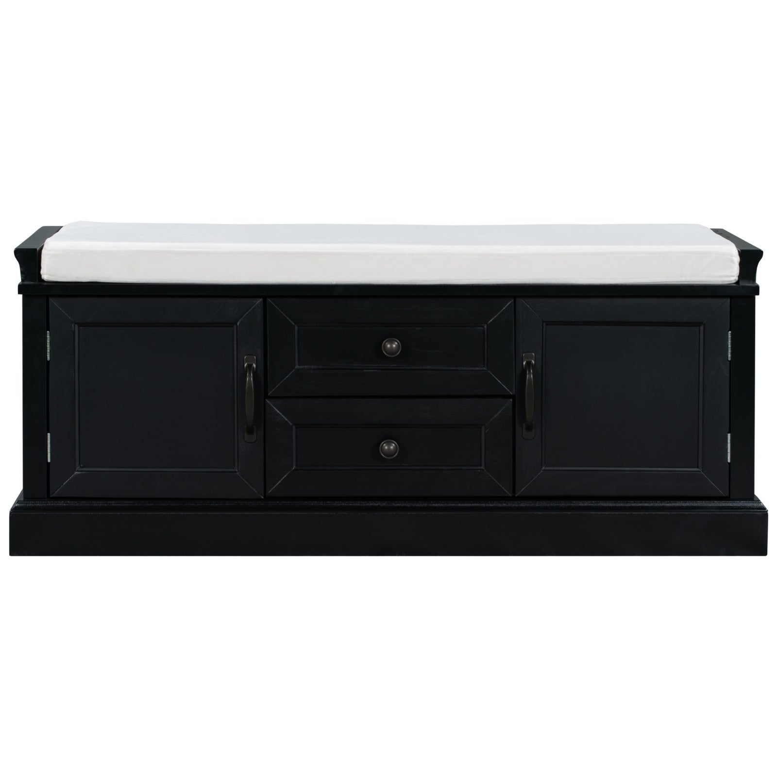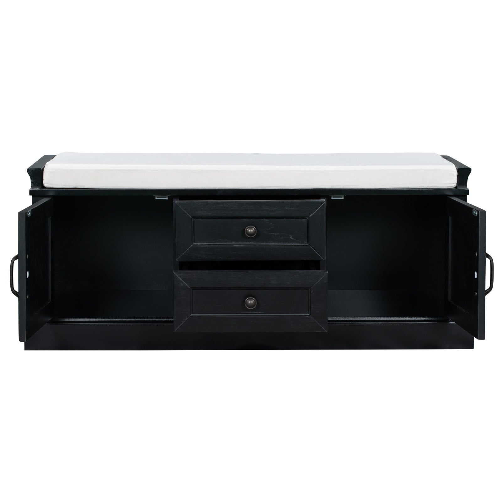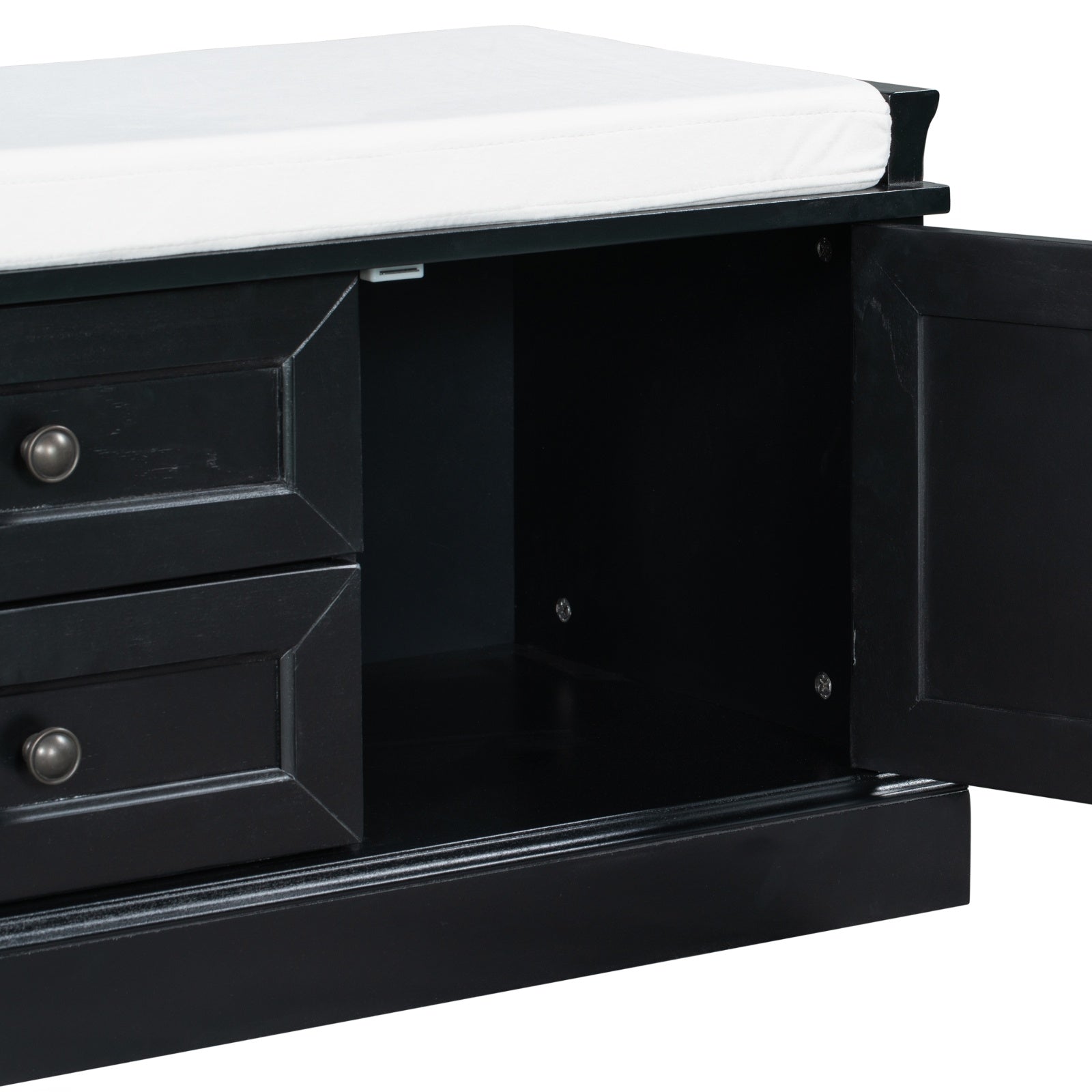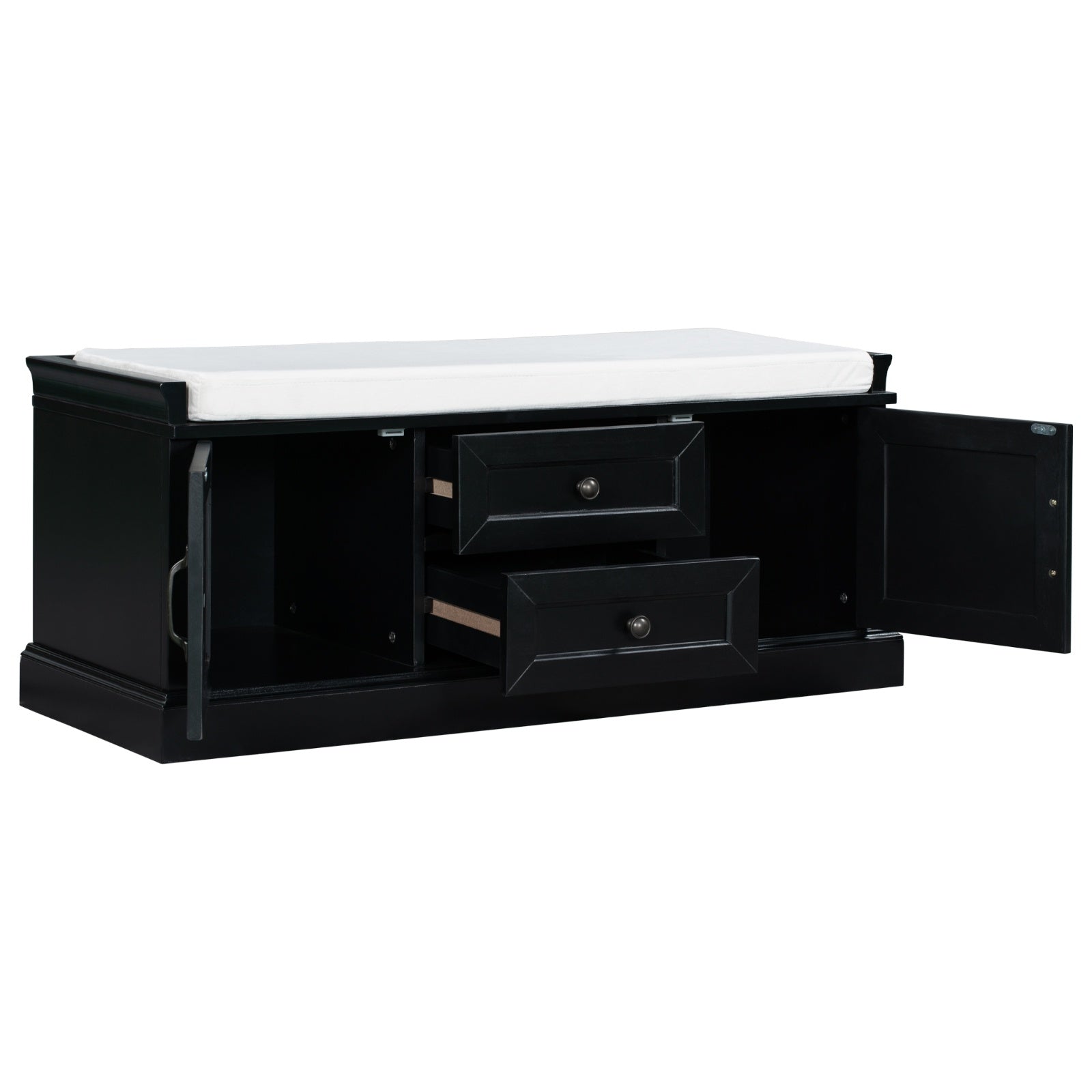 TREXM Storage Bench with 2 Drawers and 2 Cabinets, Shoe Bench with Removable Cushion for Living Room, Entryway (Black)